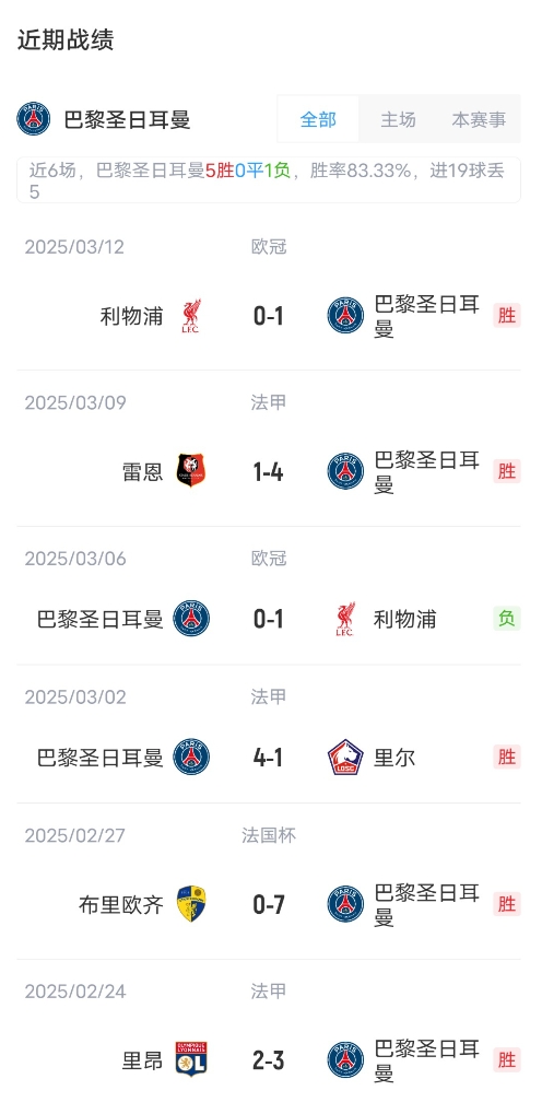 目前法甲聯(lián)賽巴黎取得了20勝5平的成績,積65分高居聯(lián)賽榜首。馬賽取得了15勝4平6負(fù)的成績,積49分位居聯(lián)賽第二。
