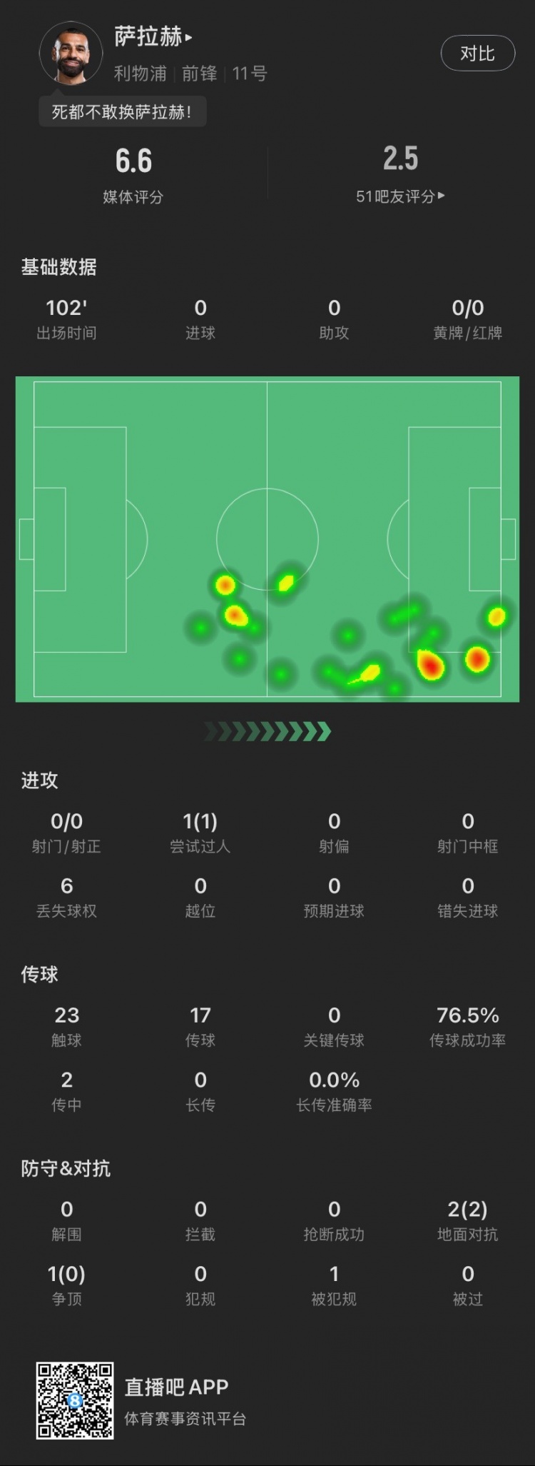齋月的鍋?薩拉赫為紅軍打滿全場但0射門,23年對陣曼城以來首次