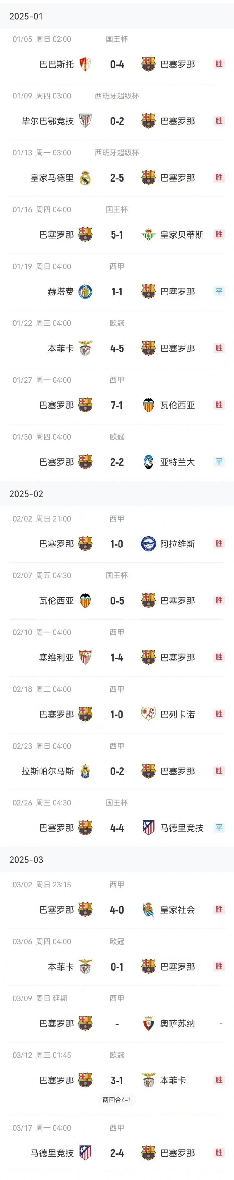數(shù)據(jù)統(tǒng)計顯示,自去年年底2連敗之后,巴薩進入2025年后各項賽事18場不敗。