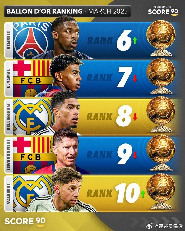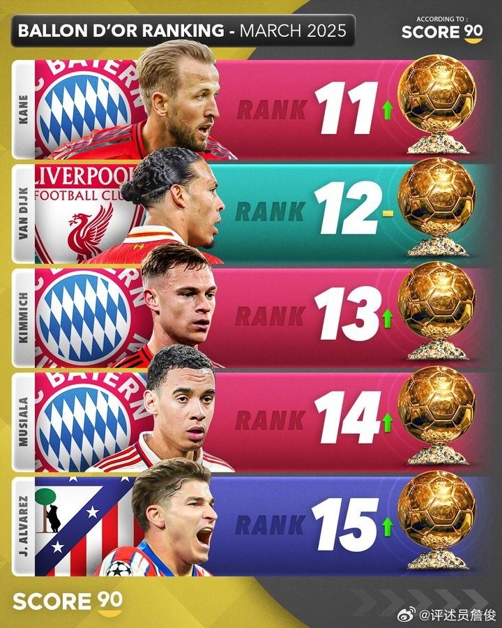 詹俊說(shuō):國(guó)外網(wǎng)站評(píng)分系統(tǒng)中2025年金球獎(jiǎng)熱門(mén)人選前十五名。本季已經(jīng)打進(jìn)30球迎來(lái)個(gè)人職業(yè)生涯巔峰的登貝萊,會(huì)不會(huì)是“黑馬”?如果大巴黎本季歐冠最終捧杯的話(huà)……